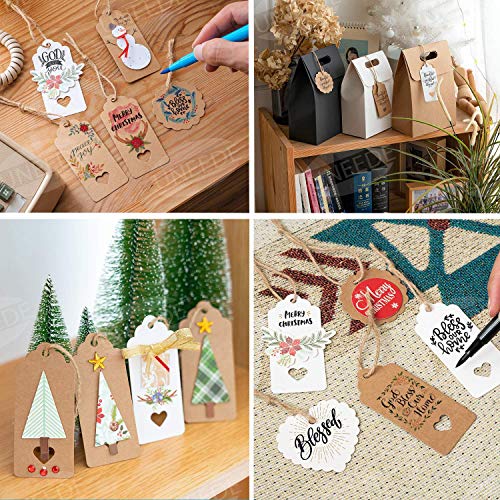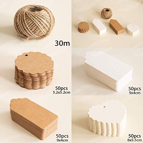 Reiches Produkt: 200 Stück Hochwertiges Kraft Etiketten Anhänger Enthält 50 Weiß Stück Rechteck, 50 Weiß Stück Rechteck,50 Stück Herzform, 50 Stück Runde, 30 Meter Jute Schnur.Erfüllen Sie Ihren unterschiedlichen Tagesbedarf.. Hochwertiges Kraftpapier:Die Anhänger sind aus sehr stabilem Kraftpapier und richtige Dicke, lassen sich sowohl bestempeln als auch gut beschriften, und sehr Freundlich schön, Einfache und bequeme Handhabung.Das Loch bzw. das Herz sind gut gestanzt und leicht zum Durchstechen, und die Schnur lässt sich überall gut durchziehen.. Schöne Form:Die Geschenkanhängern haben eine schöne Form, sowie eine praktische Größe. Hinweis: Rechteck Auf der Karte gibt es 2 Löche, ein Rund und ein Herz. Andere Form mit 1 Rund Loch. Die beide Löche haben wir mit Maschine gepresst und sind noch auf der Karte. Sie können einfach den Herzform von der Karte ausziehen und als kleine Dekoration verwenden.. BreitesAnwendungsspektrum:Perfekt für weihnachtsgeschenke, Kleidung Schilder, Preisetiketten, danke Anmerkungen, Schüler Wörter Karten, Lesezeichen-Tags, Kuchendeckel, Wunsch Bäume, danke Anmerkungen, Liebesbriefe, Party Etikett, DIY Deko, Zierate des Sammelalbums, Kofferanhänger Tags, Karte oder andere kunsthandwerkliche Projekte gewendet etc.. Fachmann: Ihre Zufriedenheit ist unsere Priorität, wir bieten immer Qualitätsprodukte mit dem besten Service an. Wenn Sie mit unserem Geschenkanhänger-Set nicht zufrieden sind, setzen Sie sich einfach mit uns in Verbindung. Wir können Ihnen eine Rückerstattung oder einen Ersatz anbieten.