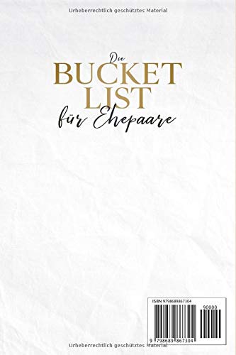 Die Bucket List für Ehepaare: 250 Dinge, die ihr nach der Hochzeit tun könnt 12.95 EUR ... [mehr] Zur Wunschliste hinzufügen Auf Wunschliste Zum Anbieter