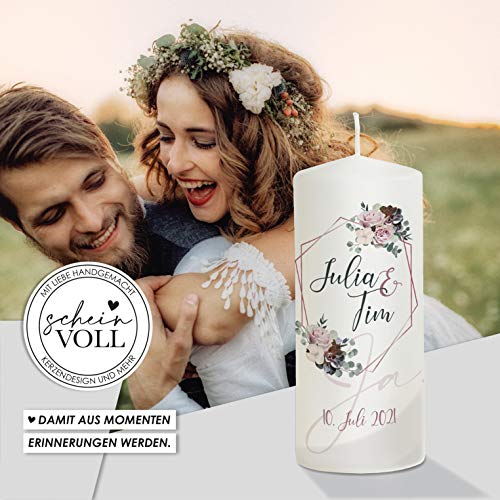 ? TRAUMHAFTE DESIGNVARIANTEN - Jedes Design wird von uns persönlich und mit ganz viel Liebe entwickelt.. ? AUFWENDIGE HANDARBEIT - Nach der Entwicklung bringen wir die Designs in sorgfältiger Handarbeit auf die Hochzeitskerzen auf.. ? RAL-zertifiziert - Alle Hochzeitskerzen sind RAL-zertifiziert, wodurch eine gleichbleibend hohe Qualität gewährleistet wird. ?INDIVIDUALISIERUNG IN HANDARBEIT - von Hand aufgebrachte Foliengestaltung, farbiger Druck für Fotos und Grafiken möglich, Individuelle Gestaltung mit Illustrationen, Sprüchen, Gedichten oder lieben Botschaften. ? Schnelle Bearbeitung: Sobald Ihre Bestellung bei uns eingeht, setzen wir uns direkt an die Umsetzung. Auch besondere Wünsche sind kein Problem. In der Regel versenden wir die Bestellung innerhalb von 48 Stunden