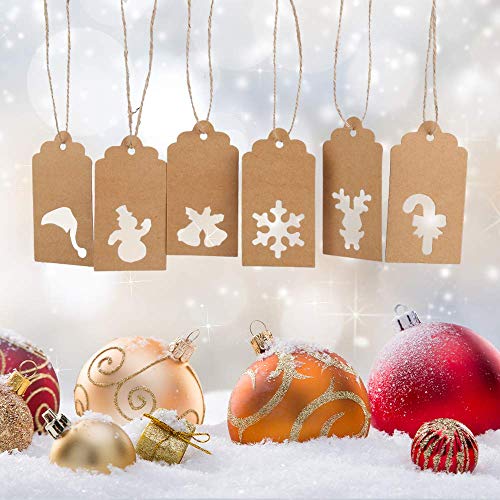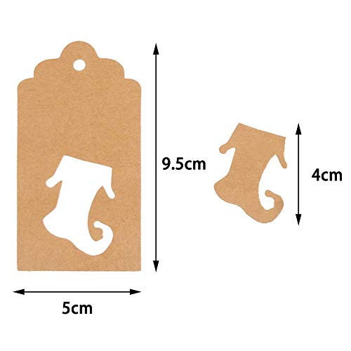 DERAYEE 100 stk Kraftpapier Anhänger Etiketten Geschenkanhänger 4.5x9.5cm mit 10 Stile und Jute-Schnur 30m für Weihnachten oder Hochzeit Geschenk Tags