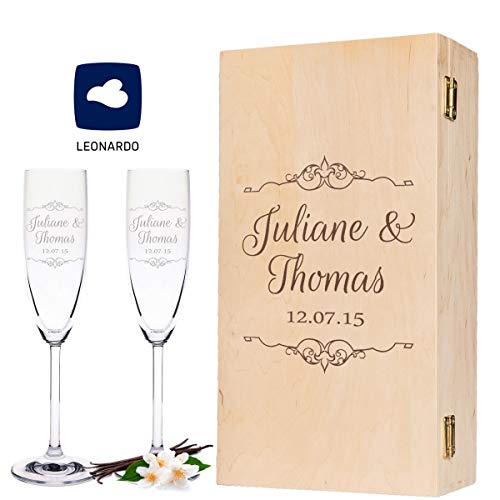?? 100% LEONARDO - Qualitätsglas trifft hochwertige Lasergravur. Jedes unserer Sektgläser stammt aus dem Traditionshause Leonardo. Die Marke steht für glasklare sowie feinste Verarbeitung. ?? MODERNE LASERGRAVUR - Sektgläser mit Gravur. Stilecht und stylisch genießen. Das gravierten Sektgläser mit Gravur - schönes Geschenk zur Hochzeit für das Brautpaar auch als Verlobungsgeschenk. ?? GESCHENK SEKTGLAS - Unser Sektglas mit Gravur ist das perfekte Geschenk für die verschiedensten Anlässe. Glänze mit dem perfekten Geschenk zur Hochzeit, Muttertag, Valentinstag oder als Weihnachtsgeschenk. ?? ABMESSUNG - Die Maße des Sektglas entsprechen mit (B) 70 x (H) 245 x (L) 70 mm dem Standard. Die maximale Füllmenge eines Sektglases beträgt 210 ml.. ?? SERVICEORIENTIERT - Bestellen Sie noch heute und überzeugen Sie sich selbst von der erstklassigen Qualität. Sollten Sie noch Fragen zu unseren Produkten haben oder eine Lieferung nicht Ihren Vorstellungen entsprechen, stehen wir Ihnen sowohl telefonisch als auch via email mit Rat und Tat zur Seite