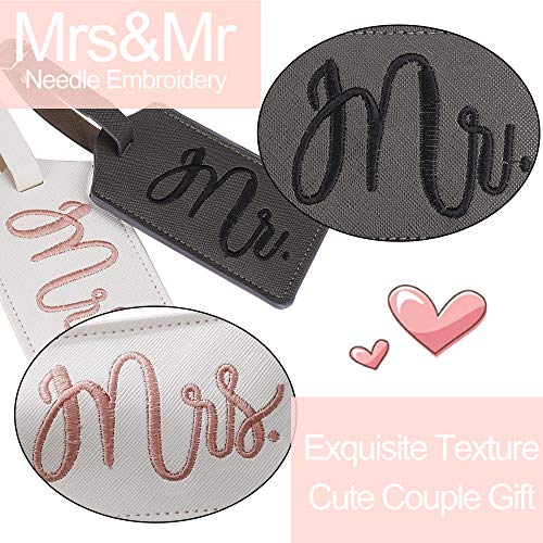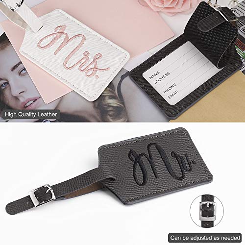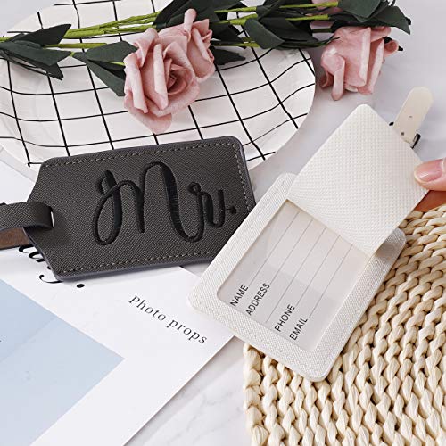 2 niedliche Gepäck-Namensschilder: 1 dunkelgrauer Gepäckanhänger mit gesticktem "Mr." in Farbe schwarz, 1 weißer Gepäckanhänger mit gesticktem "Mrs." in der Farbe pink. Geschenk für Hochzeiten, Brautdusche, Flitterwochen, Paare, Jubiläum, Valentinstag, Weihnachten, Kreuzfahrt, Verlobung, frisch verheiratete Paare, Dies ist eines der unverzichtbaren Geschenke.. Datenschutzklappe: Die Datenschutzklappe dient zum Schutz Ihrer persönlichen Daten. Unser Gepäckanhänger verfügt über eine vollständige Datenschutzklappe zum Schutz Ihrer sensiblen Daten, die sicherer und effektiver ist, um die Privatsphäre Ihrer Frau und Ihrer Frau auf Reisen zu schützen.. Einfach zu identifizieren: Elegante Reise-ID-Identifikationsetiketten Mit dem Set können Sie Ihr Gepäck schnell mit "mr" identifizieren. und "Frau". leicht auf dem Gepäckband zu identifizieren, helfen Sie Ihnen, Ihr Gepäck einfach auszusuchen.. Vielseitige Verwendung: Hochzeitsreisetags mit verstellbarem Metallschnallenriemen sind 20 cm lang und passen perfekt in Koffer jeder Größe. Geeignet für Check-in-Gepäck, Handgepäck, Koffer, Laptoptasche, Reisetasche, Kinderwagen, Rucksack, Schultasche usw. Egal, ob Sie mit dem Bus, Flugzeug, Zug oder Schiff anreisen, diese sind ideal.. Material & Größe: Mr. und Mrs. Travel Tags aus Kunstleder, wodurch das Tag langlebig, aber leicht genug ist, um jede Fernreise zu überstehen. Abmessungen: 11,2 x 5,8 cm, perfekte Größe zum Einsetzen einer Visitenkarte in Standardgröße.