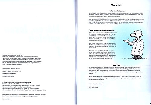 Schule für Tenorsaxophon von Jaap Kastelein, Michiel Oldenkamp. Hören, lesen a spielen ist die individuelle Bläserschule für dreizehn verschiedene Instrumente, die im Einzel- oder Gruppenunterricht eingesetzt werden kann. Die bewährte Methode ist nach den gegenwärtigen Regeln und Ansprüchen der Musikerziehung zusammengestellt.. Sie enthält viele Spiele, Puzzles, Hörübungen, Lieder und Originalkompositionen. Mit der Begleit-CD macht das Üben natürlich doppelt Spaß!. Im ersten Band werden die Notenwerte bis zu Achteln in einem moderaten Tonumfang vorgestellt. Dazu kommen einige Vor- und Versetzungszeichen und notwendige Hilfsgriffe. Besonders interessant für die jungen Spieler ist eine Extra-Seite, auf der die Geschichte des eigenen Instruments bebildert dargestellt ist.. Verlag: De Haske \ Verlag ?: DHP991749 \ ISBN: 9789043105859 \ Reihe: Hören, Lesen und Spielen \ Komponist: Jaap Kastelein, Michiel Oldenkamp \ Besetzung: Tenor Saxophone \ Produktart: Buch + CD \ Seiten: 56 \ Sprache: Deutsch \ mit bunter herzförmiger Notenklammer \ Die Farbe der Notenklammer kann abweichen \