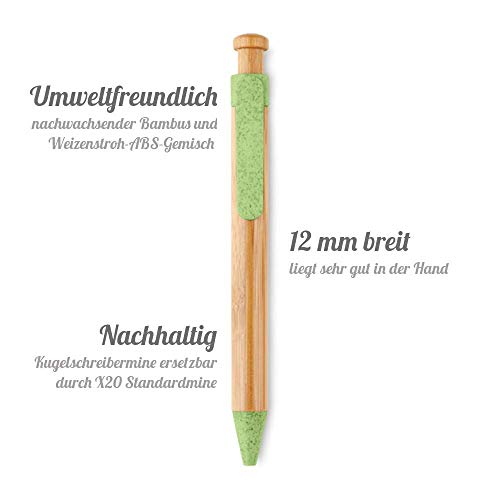 Personalisierter Öko Holz Kugelschreiber Stift mit Name Gravur | Geschenk für Geburtstag, Abschied, Weihnachten | nachhaltig | Bambus, Weizenstroh | blauschreibend (grün)