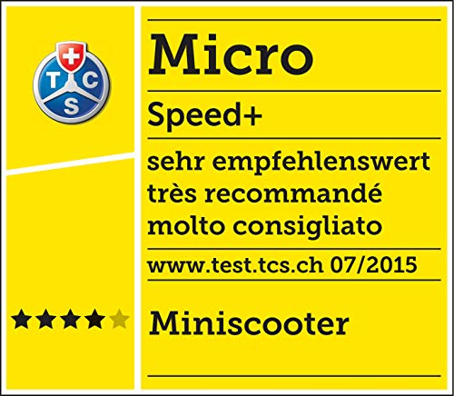 Klappbarer Micro Scooter Speed+ in schwarz-orange. Roller für Kinder und Erwachsene. Mit schockabsorbierenden 145 mm Rollen für ein besonders angenehmes Fahrgefühl.. Besonders kompakt und leicht und damit perfekt für den Weg zu Schule oder den Auflug in die Stadt.. Gewicht: 3.75 kg / Rollen: 145 mm 83° Shore A PU / Lenkerhöhe: 68 - 96 cm / Maße geklappt: 67x12x25 cm / Trittbrett: 12 x 34 cm / Belastbarkeit: 100kg. Lieferumfang: Micro Scooter Speed+ Schwarz-Orange, Gebrauchsanweisung, Inbusschlüssel, Reflektoraufkleber