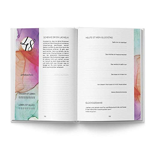 Hardcover Journal zum Lesen, Ausfüllen und Mitmachen.. 272 Seiten in hochwertiger Fadenbindung, 100 % plastikfrei verpackt. In 11 Phasen zu mehr Dankbarkeit, Liebe und Glück.. Wertvolle Persönlichkeitsarbeit durch tägliche Selbstreflexion. In Deutschland produziert, liebevoll in Niederbayern verpackt, direkt zu Dir, um Deinem Glück auf die Sprünge zu helfen.