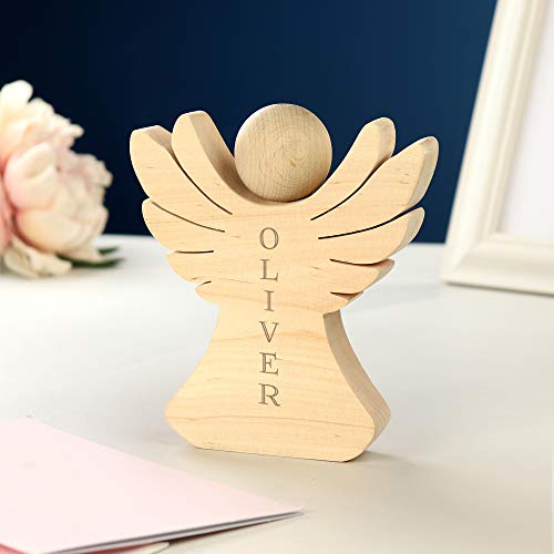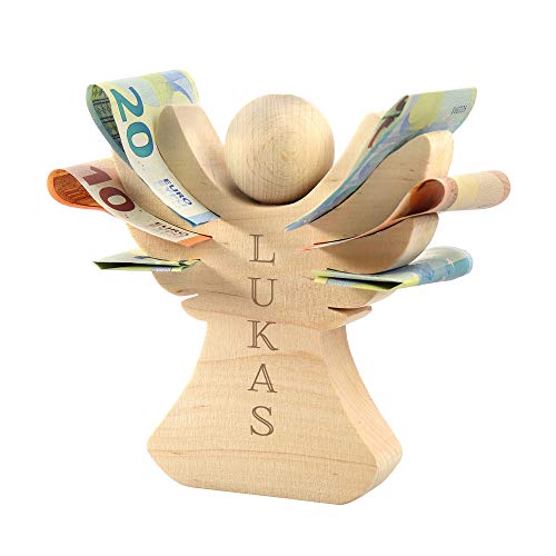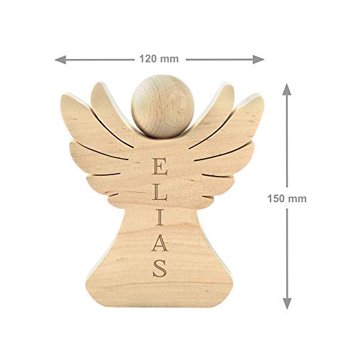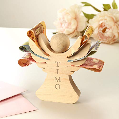 Casa Vivente Holzengel mit Gravur zur Taufe, Personalisiert mit Namen, Verpackung für Geldgeschenke, Geschenk zur Konfirmation und Kommunion