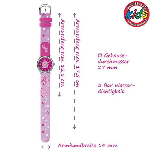 JACQUES FAREL Kinder-Armbanduhr Pferd Sterne rosa-pink Analog Quarz Metall Kunstleder HCC 312