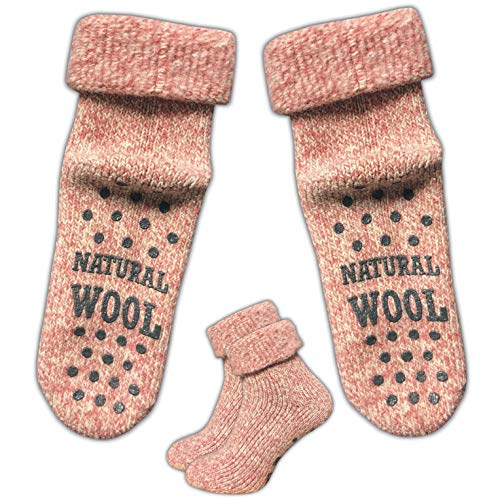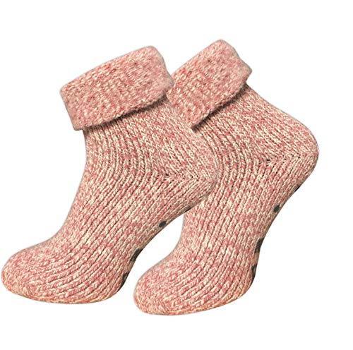 GAWILO 1 Paar Damen Stoppersocken – ABS Socken – Wollsocken – ohne drückende Naht – kuschelige Innenfrottee – ideal bei kalten Füßen (39-42, rosa melange)
