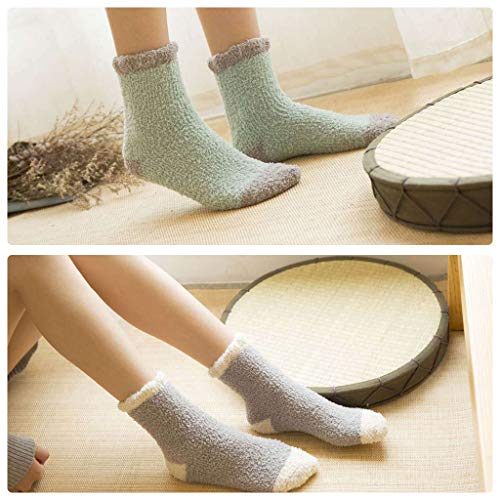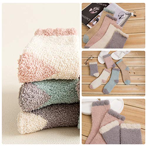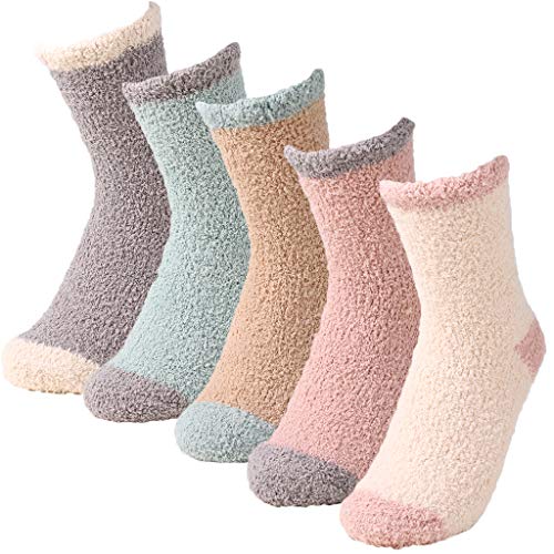 GUTES MATERIAL - Superweiche, warme, dehnbare Damen-Fuzzy-Socken aus Mikrofaser bestehen aus hochwertigem Polyester und Elasthan. Einheitsgröße: Größe 4-7 UK (36-40 EU). Die Gummibänder am Knöchel drücken Ihre Beine nicht zusammen und bieten Ihnen das beste und angenehmste Trageerlebnis für alltägliche Aktivitäten und sogar im Schlaf. PERFEKT. PERFEKTER WERT: Diese hochwertigen Fuzzy-Socken für Frauen sind eine gute Wahl für Sie, wenn Sie als Schlafsocken oder Pantoffelsocken frei zu Hause gehen möchten. Und Sie können sie auch im kalten Winter im Freien tragen.. 5 IN 1 PACK: Jede Packung enthält 5 verschiedene warme, flauschige Socken. Der Mutistyle und die Farbe können Ihren täglichen Anlässen wie Büro, Innen, Außen, im Frühling, Herbst, Winter oder bei kaltem Wetter und in Schneegebieten gerecht werden!. SWEET DREAM - Fuzzy-Socken für Frauen sind wichtig für Ihre Gesundheit, um Ihre Füße warm zu halten. Es stärkt Ihre Durchblutung und Gesundheit. Tragen Sie Schlafsocken, während Sie ins Bett gehen. Es hält Ihren Körper warm und stabilisiert Ihren Rhythmus, so dass Sie einen schönen tiefen Schlaf mit Zuckertraum haben können.. INTIMATIVES GESCHENK: Diese entzückenden und warmen Winter-Fuzzy-Socken sind süße Geschenke, die Sie an Weihnachten, Geburtstag, Jubiläum, Silvester und allen denkwürdigen Ereignissen an Ihre Familien und Freunde senden können