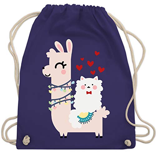 Shirtracer Valentinstag - Lama und Katze mit Herzen - Unisize - Lila - Lama - WM110 - Turnbeutel und Stoffbeutel aus Baumwolle