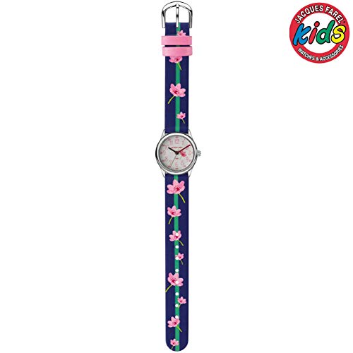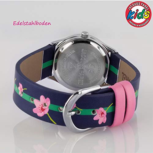 JACQUES FAREL Kinder-Armbanduhr Mädchen Blumen rosa-blau Analog Quarz Metall Kunstleder HCC 301