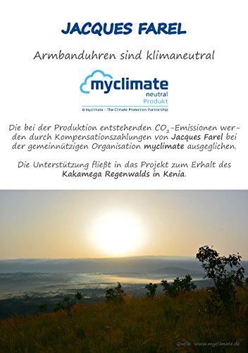VEGANES KUNSTLEDER Band (Leatherette) mit zauberhaftem Blütenregen auf blau-grünem Hintergrund; glänzend poliertes Metallgehäuse. DEUTLICHES ZIFFERBLATT mit filigranen Zahlen in Rosa und floralem Motiv; durch die gute Ablesbarkeit auch als Lernuhr geeignet; Minuteneinteilung; Stundenzeiger und Minutenzeiger passend in Schwarz und Pink. WEICHES BAND mit einer zum Blumenmuster passender rosafarbener Schlaufe; optimal auch für kleine Kinderarme; Bandbreite 14 mm; einstellbarer Armumfang zwischen 12,5 cm und 17,5 cm; Stahlschließe. ORIGINAL JAPANISCHES QUARZWERK mit analoger Anzeige und Mineralglas, geschützt durch eine Wasserdichtigkeit von 3 bar; Durchmesser 27 mm, Gehäusehöhe 8 mm; Gehäuseboden und Krone aus Edelstahl. QUALITÄTSUHR DER MARKE JACQUES FAREL mit gutem Service in Deutschland - ideal als Geburtstagsgeschenk oder zur Einschulung zum Lernen der Uhr.