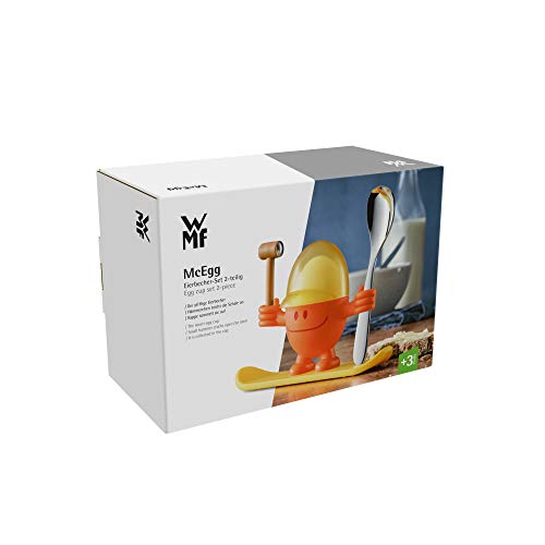 WMF McEgg Eierbecher mit Löffel, lustiger Eierbecher Kinder, Kunststoff, Cromargan Edelstahl poliert, spülmaschinengeeignet, orange