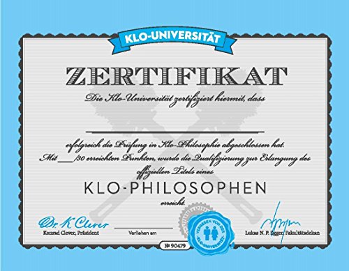 Klo-Philosoph: In 100 Sitzungen zum Klugscheißer 11.00 EUR ... [mehr] Zur Wunschliste hinzufügen Auf Wunschliste Zum Anbieter