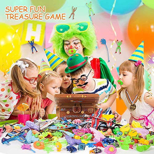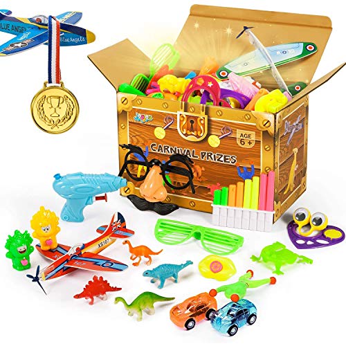 ?????22 Arten? Reich an Vielfalt, insgesamt 22 Arten von Partyspielzeug, einschließlich Medaillen, Faltflugzeuge, Melodicas, Frösche, Wasserpistolen, Dinosaurier, Autos, magische Masken, klebrige Wandkletterer, Gesichtspuppen, Aufkleber, Ringe und so weiter.. ?????Geheimnisvolle Schatzkiste? Überraschen Sie das Design einer Schatzkiste. Wenn Kinder die Spielzeugkiste erhalten, scheint es, als ob sie eine Schatzkiste erhalten, in der viele erstaunliche Schätze stecken.. ?????Für Mehrere Szenen Geeignet? Ideales Partytütchenspielzeug für Ostern Kinder Geschenke, Kindergeburtstag, Preisboxspielzeug, Partypreise für Karnevalsspiele, Schulprämien. ?????Ostergeschenk für Kinder? Kinder werden lange Freude an diesen Spielsachen haben. Lösen Sie die Schwierigkeit, kleine Spielsachen oder Preise für Kinder zu sammeln, und sparen Sie Eltern und Lehrern Zeit.. ?????Sicher für Kinder? Diese kindergeburtstag gastgeschenke sind aus sicheren Materialien gefertigt und schaden nicht der Gesundheit von Kindern. Kleinteile enthalten. Geeignet für Kinder ab 3 Jahren.