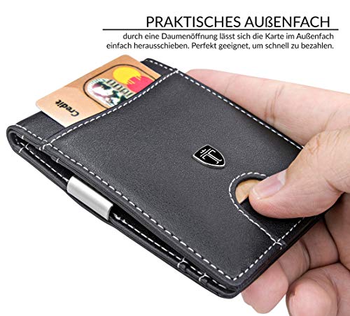 ???????????????????????????????????????????? ????????????????????Ö???????????? - Besitzt trotz der Größe von 10,6 x 8,3 x 1,7 cm 9 Kartenfächer. Das Schiebefach ermöglicht einen schnellen Zugang zu häufig genutzten Karten. ???????????????????????????????????? ???????????????????????????????????????????????????????????????????? - Mit der eingebauten Geldspange aus Edelstahl lassen sich Geldscheine befestigen. ????Ü???? ????????????????Ü???????????? ???????????????????????????????????????? - Durch ein Institut geprüfte Abschirmung der RFID Frequenz 13,56 MHz. Karten mit NFC-Chip werden vor dem Auslesen geschützt. ???????????????????????????????????????????????????????????? ????Ü???? ???????????? ???????????????????????????????????????????? - Die Geldbörse ist schmal , damit sie in jede Hosentasche passt. ???????????????????????????????? ???????? ???????????????????????????? - Ausgewählte Materialien und deutsche Genauigkeit sorgen für Langlebigkeit und hochwertiges Design