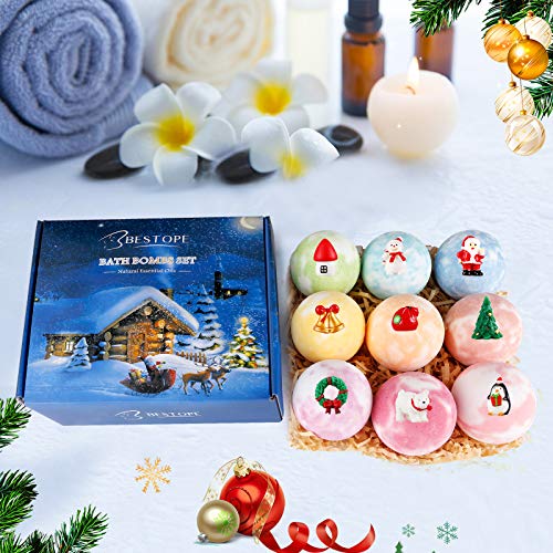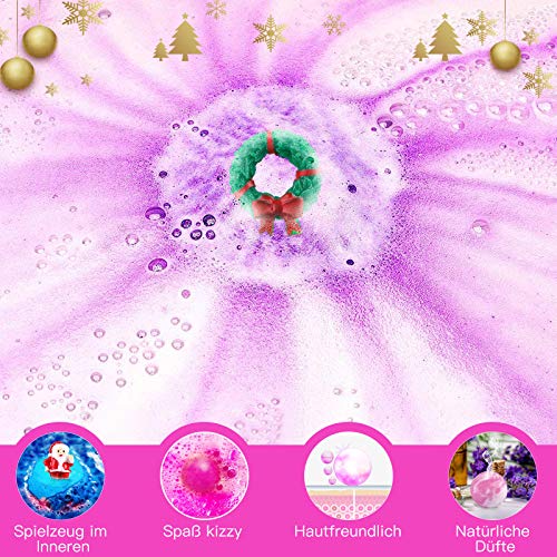 ????Versteckte Geschenke und unerwartete Überraschungen: Badebomben bietet Ihnen ein neues Badeerlebnis und Spaß. Sobald es in die Badewanne gestellt wird, sprudelt es, setzt einen wunderbaren Geruch frei und pflegt die Haut. Gleichzeitig bietet es verschiedene Geschenküberraschungen. Jeder Badeball wird mit einem Weihnachtsspielzeug geliefert, darunter:Glocken etc.. ????Natürliche Inhaltsstoffe und feuchtigkeitsspendende Haut: Die Hauptbestandteile von Badebomben sind Meersalz, ätherisches Öl, Sheabutter usw. Diese Inhaltsstoffe reinigen und befeuchten die Haut effektiv und machen Ihre Haut glatter und glänzender. Natürliche organische Rohstoffe und handgefertigtes Badebomben-Set erfüllen die Sicherheitsstandards, sodass Sie es sicher verwenden können.. ????Neun Badebomben-Set: Ein einzigartiges handgemachtes Badebomben mit 9 Düften, darunter Orange und Minze. Egal, ob Sie sich entspannen, Ihren Körper aufladen oder einfach nur die Heimversion des SPA-Badens erleben möchten, Sie benötigen eine Badewannenbombe mit dem Aroma der Aromatherapie, um Ihre Lieblingsatmosphäre zu schaffen.. ????Handgemacht und ohne Zusatzstoffe: Badebomben besteht aus natürlichen, ungiftigen Inhaltsstoffen. Unsere Badebomben sind für Menschen jeden Alters geeignet und sind sorgfältig verarbeitet und haben keine Rückstände. Nach dem Baden hinterlassen sie keine Farbreste auf Ihrer Haut und Badewanne. Sie sind leicht abzuspülen, kein Blitz, Die Badewanne wird nicht schmutzig.. ????Die perfekte Geschenkauswahl: Der Badebomben set wird einzeln verpackt und in einer schönen Geschenkbox verpackt, die für Kinder geeignet ist, Kinder nach ihnen schreien und für Weihnachten, für Geburtstag, Valentinstag, Muttertag, Partys, Hochzeiten, Jubiläen usw. machen das Baden interessanter und überraschender.