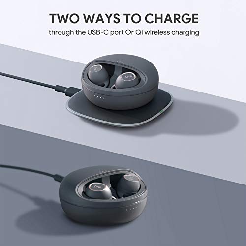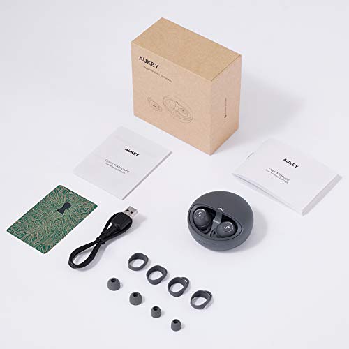 Herausragender Klang: Dynamische Treiber und Graphen-Membranen sorgen für zusätzliche Tiefen und bieten einen intensiven Sound. Dank der Wasserfestigkeit nach IPX5 müssen Sie keine Angst vor Regen haben.. Längere Wiedergabezeit: Verlängern Sie die Wiedergabezeit von 7 auf 21 Stunden dank dem stylishen Lade-Case, mit dem Sie die Ohrhörer unterwegs 3-mal aufladen können.. Kabelloses Laden über Qi: Das Lade-Case kann über USB-C oder ein Ladegerät für kabelloses Laden über Qi geladen werden. Auf diese Weise bietet sich Ihnen unterwegs vollkommen kabelloser Musikgenuss.. Keine Kabel, keine Tasten, keine Grenzen: Beide Ohrhörer sind an den Seiten berührungssensitiv, d. h. durch Tippen oder Drücken können Sie die Lautstärke ändern, Titel wechseln, die Wiedergabe starten oder pausieren oder den Sprachassistenten Ihres Smartphones aktivieren (z. B. Siri).. Lieferumfang: AUKEY EP-T10 Bluetooth Kopfhörer, 3 Paar Ohrstücke (S/M/L), 3 Paar Ohrbügel (S/M/L), USB C Kabel, Bedienungsanleitung