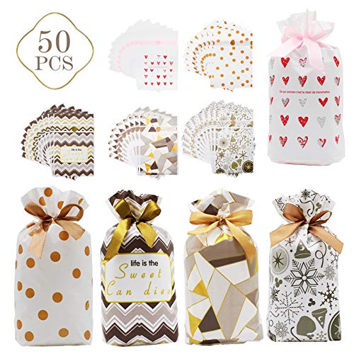 ?????Lebensmittelsicheres Material?Diese Geschenktüten aus hochwertigem PEVA,Es ist ungiftig, geschmacklos, umweltfreundlich, langlebig und kann in direktem Kontakt mit Lebensmitteln verwendet werden, Ideal für Kekse, Süßigkeiten, Pralinen, Lutscher, Donuts und kleine Geschenke und anderen kleinen Handwerk!. ?????Nützlich Kordelzug-Design?Diese Geschenktüten hat einen Kordelzug an der Öffnung Mund, so dass es leicht zu schließen und zu öffnen, innere Gegenstände zu schützen und vermisst Dinge zu vermeiden,Perfekt für Familienweihnachtsfeier bevorzugt Taschen, Weihnachtsgeschenk Taschen, Süßigkeiten Taschen, Goody Taschen, Spielzeug Taschen, Leckerlis Taschen, Weihnachtsaktion Aktivitäten. Das intime Design bringt Ihnen Bequemlichkeit.. ?????Candy Bags Size?Jede Weihnachten Geschenkbeutel misst ca. 23 x 15 cm / 9,1 x 6 Zoll; Es ist wiederverwendbar und leicht und bietet Platz für viele Weihnachtsgeschenke, kleine Spielsachen, Süßigkeiten, Schokolade und Snacks usw. und Sie können die Geschenktüte unter den Baum stellen oder in ein Fenster stellen oder an die Wand hängen für Weihnachtsschmuck verwendet werden.. ?????Große Auswahl an Verwendungsmöglichkeiten?Geeignet für Weihnachtsfeiern, Geburtstagsfeiern, Babygeburtstagsfeiern, Hochzeiten, Abschlussfeiern, Jubiläen usw. Mit dem Lebensmittelbeutel mit Kordelzug wirkt Ihr Geschenk eleganter und zarter.. ?????Was Sie bekommen?50 Stück Geschenktüten, setzen Sie Ihre handgefertigten Keks, kleine Geschenke, Süßigkeiten, Schokolade in diese Geschenktüte. für Weihnachtsdekorationen, Weihnachtsgeschenkverpackungen, Weihnachtsgeschenkdekorationen und Dekorationen in Klassenzimmern, Restaurants, Buchhandlungen, Cafés usw.Wenn Sie irgendwelche Probleme haben,kontaktieren Sie uns bitte,wir sind hier um zu dienen.