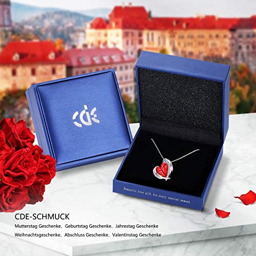 ? ROT ANGEL DESIGN ? Dieser elegante Anhänger wurde von Weißgold Wing Rahmen mit einem Rot Herz Kristall in der Mitte gefertigt. Das fließende Design ist inspiriert von weicher und anmutiger Wing, die am Himmel flattert und sich um die wahre Liebe dreht. Weißgold Halskette ist das beste Geschenk für faszinierendes Mädchen, auch die auffällige Kollektion für jeden Anlass!. ? DESIGN INSPIRATION ? Zarte Weißgold Mädchen Halskette mit Herz Anhänger Kristall in Rot. Die Halskette schließt mit einem klassischen Lobster Verschluss. Die Anhänger kann von der Kette getrennt werden. Diese Weißgold glänzende Ausgabe des Halskette, ist ein eleganter, raffinierter und vielseitig tragbarer Dauerbegleiter, der jedes Outfit immer und überall ausgehfein macht.. ? HALTBARKEIT MATERIALIEN ? Die schöne Weißgold Halskette sind enthalten absolut kein Nickel oder Blei. Platin ist das perfekte Metallmaterial. Es ist Für hohen Tragekomfort, besonders für Menschen mit empfindlicher Haut. Das sanfte Funkeln dieses Stilfavoriten passt perfekt zu vielen anderen CDE Designs und ist die ideale Geschenkidee für den Muttertag.. ? GESCHENKPAKET ? Die Schmuck wird mit einem hübschen CDE Schmuck Box kommen. Die Schmuck Geschenk Box besteht aus einem Poliertuch, einer Herz Halskette. Dieses Herz Halskette könnte Beste Mutterstag Geschenke, Geburtstag Geschenke, Jahrestag Geschenke, Weihnachtsgeschenke, Abschluss Geschenke, Valentinstag Geschenke, etc.. ? KUNDENSERVICE ? Wenn es Probleme mit dem Kauf gibt, zögern Sie nicht uns zu kontaktieren, wir helfen Ihnen, das Problem innerhalb von 24 Stunden zu beheben.