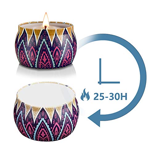 ?4 Sorgfältig gemischte Düfte?Rose, Lavendel, Zitrone, Feige, die verschiedene Düfte kollidieren und schaffen eine süße, frische und elegante Atmosphäre.. ?Reichhaltige Düfte und guter Geruch?Ausgewählte Inhaltsstoffe und hochwertiges Wachs sorgen für ein angenehmes und dauerhaftes Dufterlebnis in jedem Raum.. ?Länger anhaltende Zeit?Die Gesamtbrennzeit beträgt bis zu 100-120 Stunden mit 4 Kerzen zu je 125 g, insgesamt 0.5 kg.. ?Baumwolldocht?Der natürliche und bleifreie Baumwolldocht wird von Hand begradigt und zentriert, um eine optimale Verbrennung zu erzielen.. ?Ideales Kerzen Geschenkset?Rüsten Sie die Verpackung in einer schönen Geschenkbox auf, ohne dass ein zusätzliches Paket erforderlich ist. Ein ideales Geschenk für Massage, Spa, Weihnachten, Muttertag, Geburtstage, Valentinstag.