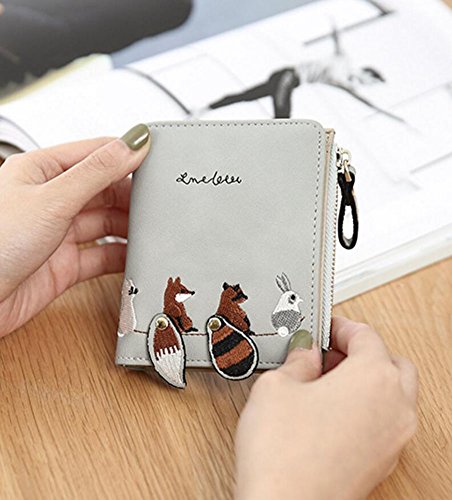 Diyafas Schöne Damen Portemonnaie PU Leder Kurz Reißverschluss Geldbörse Mädchen Kleine Kartenhalter Brieftasche Münze Tasche