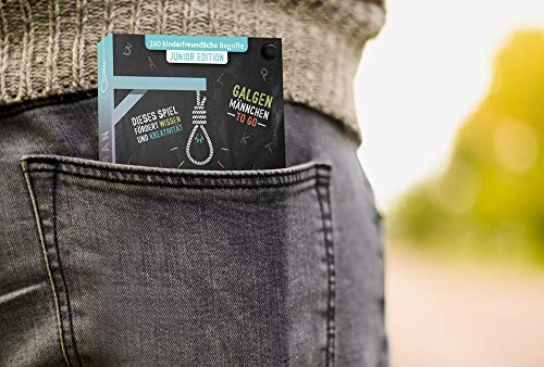 ? GALGENMÄNNCHEN AUFGEPEPPT - Innovative Neuauflage des Spieleklassikers Galgenmännchenker. Der ultn für alle Wortakrobaten und Hobbydeimative Spielblock ist die kindgerechte HANGMAN-Edition ab 9 Jahren und bietet 160 kinderleichte Begriffe für blitzschnellen Ratespaß mit Freunden. Spaß garantiert!. ???? AUSPACKEN UND LOSSPIELEN - Dank den vorgegebenen Begriffen kann das Spiel sofort beginnen. Pro Blatt wird 1 vorgegebener Begriff gesucht. Ihr könnt euch immer zwischen 2 vorgegebenen, coolen Begriffen entscheiden. Der Spielblock umfasst 80 Blatt mit insgesamt 160 kindgerechten Begriffen für 2-8 Spieler. Eine coole, neue Sonderregel "Made by Denkriesen" ermöglicht den Einsatz pro Begriff zu steigern. Maximale Spannung vorprogrammiert!. ???? COOLES REISESPIEL - Dank praktischem Hosentaschenformat mit Fächer-Effekt hast du deinen HANGMAN-Block immer dabei. Super-Ratespaß für Zwischendurch, Zuhause, Urlaub und Unterwegs - Der spannende Party-Modus ist garantiert ein Eisbrecher an jedem Spieleabend - Schluss mit Langeweile!. ???? KULTIGE GESCHENKIDEE - Dieser Hangman-Block sorgt mit Sicherheit für ein Lächeln beim Verschenken und ist eine ideale, witzige Geschenkidee zum Geburtstag, zu Ostern oder zu Weihnachten. Galgenmännchen kennt schließlich jeder und wer hätte es gedacht, dass man diesen altbekannten Spieleklassiker so schön "verpacken" kann. Nach dem Auspacken kann direkt losgeraten werden und der Spaß kann beginnen!. ???? DENKRIESEN ORIGINAL - Hochwertiges Markenspiel in coolem Design aus dem norddeutschen Kult-Spieleverlag. DENKRIESEN steht für altbekannte Spieleklassiker in neuem Gewand und echte Bestseller-Spiele mit Kult-Faktor. Wie bei allen DENKRIESEN-Produkten wird hier Qualität GROß geschrieben. Natürlich MADE IN GERMANY!