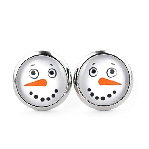 SCHMUCKZUCKER Damen Ohrstecker Schneemann-Gesicht Edelstahl Weihnachtsohrringe Silber Weiss 12mm