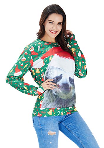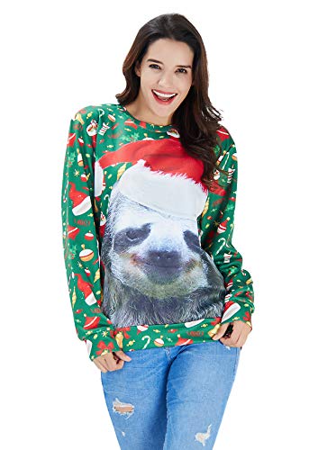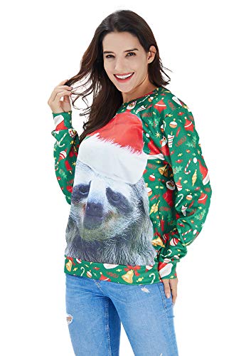 RAISEVERN Sloth Jumper, Unisex hässliche Weihnachts-Faultier-Dekoration drucken personalisierte Xmas Pullover Pullover Sweatshirt für Junge Mädchen