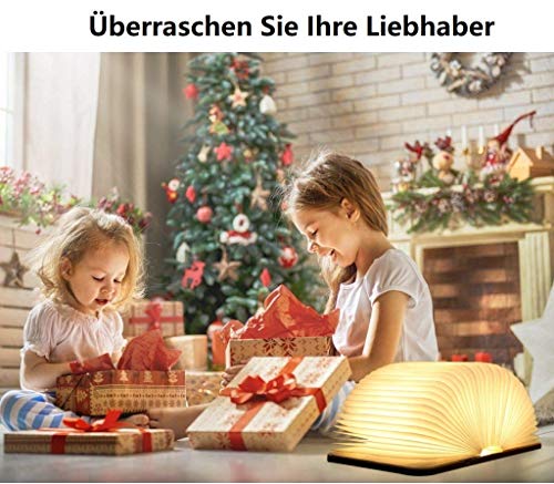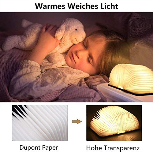 * Perfekt für Geschenk: Portable und klein, bequem mit Ihnen überall zu bringen, Ideal für Geburtstag Weihnachten Jahrestag Festival Valentinstag Geschenk für Freunde, Familie, Kollegen und Verwandten. * Hell und faltbar: Das warmweiße Licht ist hell genug, um jedem Zimmer eine romantische Note zu verleihen. Flexibles Design, Modellvielfalt, ermöglicht es Ihnen, die Form sofort zu transformieren, es kann ein Licht um 360 Grad werfen. * Einfach zu verwenden & Magnetisch: Wenn Sie das Buch öffnen, wird es eingeschaltet; Wenn Sie das Buch schließen, wird es ausgeschaltet. Magnetische Auto-Sensing, starke Absaugung, erleichtern das Öffnen und Schließen. * Umweltmaterial: Hergestellt aus umweltfreundlichem weißem Ahornholz, Laserschneidtechnologie, um das Biegen zu gewährleisten und die Lampe nicht zu beschädigen. Es ist ein perfektes Geschenk für jeden, den Sie interessieren und die beste Lampe für Zuhause und Büro Dekor. * Wiederaufladbar: Angetrieben von 880 mAh Li-on Batterie im Inneren, kann die Lampe für 4 Stunden unterstützen. Es kann über den Anschluss an Computer oder Ladegerät aufgeladen werden