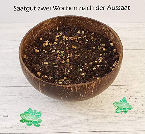 Premium Kokosnuss-Schale – ist ein originaler Blumentopf, der aus natürlichen, geschleiften Kokosnuss-Schale gemacht wurde. Der Blumentopf wurde hochwertig hergestellt und er ist ein ökologisches Produkt, wiederverwendbar. Dieser Blumentopf, ähnlich wie Keramik-Blumentopf, hat Mikroporen, die eine gute Wasserführung besitzen und Luftdurchlassen ermöglichen.. Wenn die in Ihrem Blumentopf Sukkulenten sich ausbreiten, können Sie sie in andere Blumentöpfe verpflanzen oder direkt in der Erde pflanzen. Es reicht, die Kokosnuss-Schale zu waschen, trocknen und man kann diese interessante Blumentopf-Box als Schmuck-Box, Besonderheit-Schale, Kerzenhalter oder Nuss-Schale benutzen. Kokosnuss-Schale hat eine zahlreiche Reihe von Anwendungen.. Alle Sukkulenten-Arten, die aus unseren Samen eingesät sind (von geprüften und zertifizierten Züchtern), sind frosttolerant und man kann sie durch das ganze Jahr im Garten oder in Blumentöpfen auf dem Balkon/ Terrasse in ganz Europa anbauen.. Wenn Sie der Person, die Ihnen nahe steht, ein interessantes, ökologisches Geschenk schenken möchten, wählen Sie unsere außerordentliche DDeco Sukkulenten-Box, die jeder säen und anbauen kann. Das sind nicht nur Pflanzenliebhaber, die sich über dieses Geschenk freuen können. Aus diesen kleinen Samen wird ganzer Blumentopf verschiedener Sukkulenten-Arten keimen. Das wird Sie bestimmt mit der Unterschiedlichkeit von Formen und Farmen überraschen.. Die ganze Sukkulenten-Box ist ein Zero Waste Produkt, es enthält kein Plastik, alle Elemente in unserer Box sind biologisch abbaubar und recycelt. Seien Sie nicht gleichgültig und wählen Sie Zero Waste Geschenke. Zusammen können wir die Umwelt schützen.