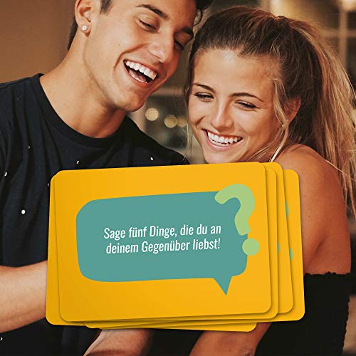 WAS DU BRAUCHST: Auf der Suche nach einer lustigen und originellen Möglichkeit deinem Partner näher zu kommen und noch mehr über Sie/Ihn zu erfahren und richtig Spaß miteinander zu haben? Möchtest du ein tolles Weihnachtsgeschenk für diesen einen besonderen Menschen? "Fragen&Wagen" ist die perfekte Lösung!. PERFEKT FÜR ALLE ANLÄSSE: Ob es sich um einen Geburtstag, den Valentinstag oder um Weihnachten handelt, "Fragen&Wagen" ist die richtige Wahl als Geschenkidee!. FRAGE- UND ACTION-KARTENSPIEL: Genießt die Zweisamkeit mit diesem aufschlußreichen und interessanten Kartenspiel für Erwachsene, mit dem ihr euch gegenseitig besser kennen lernen könnt! Die mehr als 100 Fragen&Aufgaben werden tiefgründige und manchmal auch witzige Gespräche anregen, für Knistern sorgen und eure Partnerschaft stärken (und zwar besser als es jeder Beziehungsratgeber je könnte)!. FÜR DEN LIEBLINGSMENSCH: Bestelle dieses erstaunliche Spiel für deinen Partner. Egal ob als Geschenk für Männer oder Frauen, du kannst sicher sein, dass dieser Liebesbeweis super ankommt! Das Spiel ist extrem vielseitig und wird euch dabei helfen, eine ganz besondere Zeit miteinander zu verbringen.. DAS IDEALE GESCHENK: Du suchst ein Geschenk für deinen Freund, dass ihm zeigt: "Ich liebe dich", aber weißt nicht was du ihm schenken sollst? Mach ihm eine Freude - Schenke "Fragen&Wagen"! Für alle, die langweilige Weihnachtsgeschenke für Männer satt haben und lieber ausgefallene Geschenke bevorzugen.