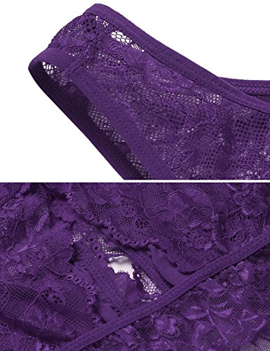 Avidlove Damen Dessous Reizwäsche Set Sexy Neckholder BH Negligee Body Spitze Lingerie Unterwäsche Nachthemd String Babydoll Lila M