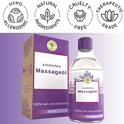 ? AYURVEDA: Die Ayurvedische Lehre birgt Jahrtausend alte Schätze & wertvolle Rezepte. Diese Massageöl hat eine Komposition die besonders sinnlich und stimulierend aber auch entspannend und beruhigend. Die Rezeptur stammt aus der Kamasutra Lehre und kann für erotische Partnermassagen sowie für therapeutische Zwecke verwendet werden.. ? QUALITÄT: Enthält ausschließlich hochwertige Inhaltsstoffe, die die Haut babyzart pflegen, nach Ayurvedischen Richtlinien entwickelt und nach strengen Qualitätsstandards hergestellt. ? WELLNESS MASSAGE: Nährende Ölkomposition aus unterschiedlichen hochwertigen Ölen, angereichert mit Provitamin E. Sorgt für ein langanhaltendes Gleiten. Nicht reizend und kann auch auf jeglichen Schleimhäuten angewendet werden.. ? HAUTPFLEGE: Die Öle pflegen die Haut Babyzart spenden Feuchtigkeit & hinterlassen ein samtweiches Hautgefühl.. ? 100 % Zufriedenheits Versprechen ? Auf der ganzen Welt finden viele Menschen durch die Produkte von Grüne Valerie wieder zurück zu ihrer natürlichen Schönheit. Solltest du zu den wenigen Ausnahmen gehören bei denen es nicht wirkt, kannst du dich jederzeit bei uns melden und wir erstatten dir sofort den kompletten Kaufbetrag zurück! Und du musst nicht mal das Produkt zurück zu uns schicken!!! Unglaublich? Nicht wirklich, bei uns ist der ? Kunde einfach immer noch König! ?