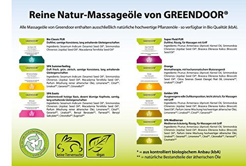 Echte 4,6 Sterne: 40x5 Sterne + 6x4 + 2x3 + 2x1 = 232/50 = 4,64 Sterne. Massageöl GESCHENKSET im GESCHENK-KARTON: 7 professionelle Massageöle aus hochwertigsten BIO Pflanzenölen. SEIDIGE Textur, einmaliges natürliches Massagevergnügen, PROFI QUALITÄT für die Physiotherapie / Massagestudios Massage-Set - perfektes Geschenk für jeden Anlass. 2 SORTEN OHNE DUFT, weitere 5 Sorten mit REINEN ÄTHERISCHEN ÖLEN - keine chemischen Düfte. Ohne Zusätze / Zusatzstoffe, ohne künstliche Aromen, ohne synthetische Düfte, ohne Paraffin = ohne Mineralöl, ohne Parabene, ohne Konservierungsmittel, natürlich ohne Tierversuche, vegan. PROFESSIONELLES Massageöl, hervorragende natürliche Hautpflege mit BIO Ölen für ultra zarte Haut, Massage, Partnermassage, Muskelentspannung, Hot Stone, intime Massagen (Varianten ohne ätherische Öle). HANDGEFERTIGT in der bayerischen Naturkosmetik Manufaktur Greendoor in Deutschland. DARUM NATURKOSMETIK VON GREENDOOR: 1) Hochwertigste Rohstoffe. Pflanzen-Extrakte in patentiertem Verfahren gewonnen = Erhaltung der natürlichen Kraft der Pflanzenwirkstoffe - 2) Rohstoffe bevorzugt aus biologischem Anbau - 3) Sorgfältige Herstellung von Hand, Bewahrung der Natürlichkeit der Rohstoffe - 4) Natürliche Rezepturen mit wenig verschiedenen Rohstoffen = verringertes allergenes Potenzial - 5) Immer ohne Mineralöle, Laureth-Sulfate, Parabene, Silikone