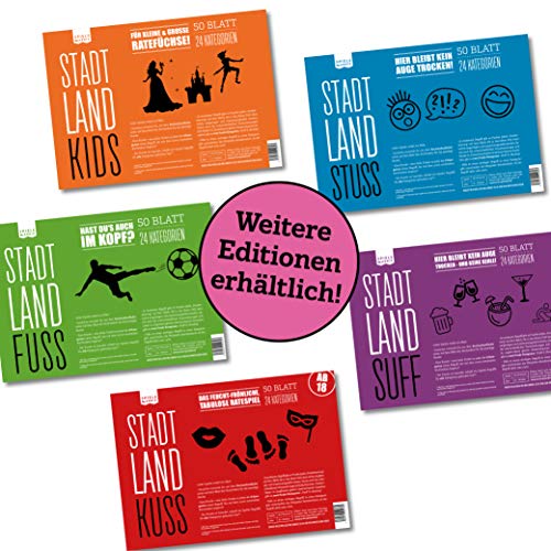 ???? DER KLASSIKER NEU AUFGELEGT – Ihr möchtet Stadt, Land, Fluss mal ganz anders spielen? Kein Problem! Wir haben uns 24 kreative und witzige Kategorien ausgedacht, so dass Ihr selbst nichts weiter tun müsst, außer loszuspielen und Spaß zu haben. Mit praktischem BUCHSTABENFINDER und 2 SCHWIERIGKEITSGRADEN für Anfänger & Profis. Ab 2 Spielern / ab 18 Jahren / DIN A4-Format. ???? 24 WITZIGE, TABULOSE, FEUCHT-FRÖHLICHE KATEGORIEN – Schon mal überlegt, wie Du als Pornodarsteller/in heißen könntest? Mit welchem Promi Du gerne mal ..? Welche Ausreden es alles gibt, um sich vor Sex zu drücken? Welche Gründe es für Seitensprünge gibt? Nein? Dann wird Dich dieses Spiel an die Grenzen Deiner Fantasie treiben – und darüber hinaus!. ???? SOFORT LOSSPIELEN. ÜBERALL! – Ihr braucht nichts weiter als einen Stift und gute Laune! Perfekt sowohl für das schnelle Spiel zwischendurch zuhause als auch für unterwegs im Urlaub oder im Auto. Auch als Partyspiel geeignet. Die kompakten DIN A4-Blöcke passen in jeden Rucksack und (fast) jede Handtasche!. ???? PERFEKTES GESCHENK – Beschenk Dich selbst oder andere mit diesem witzigen Ratespaß! Auch perfekt als kleines Mitbringsel zum Geburtstag, Junggesellenabschied oder zum Wichteln. Oder für einen Spiele- oder Partyabend, bei dem man sofort mit dem Spielen loslegen kann. Vortrinken/Vorglühen war noch nie so witzig wie mit diesem Trinkspiel!. ???? DIE SPIELEFABRIK aus BERLIN macht „Gutes von gestern“ zu „Coolem von heute“: In unserer Kreuzberger Hinterhof-Manufaktur interpretieren wir Spieleklassiker neu und bereiten sie so auf, dass bewährte Formate in völlig neuem Glanz erstrahlen. Unsere Spiele zeichnen sich durch einfache Handhabung ohne Schnick-Schnack und einen schicken, reduzierten Retro-Look aus.