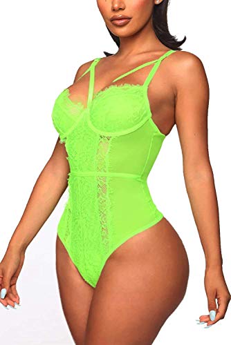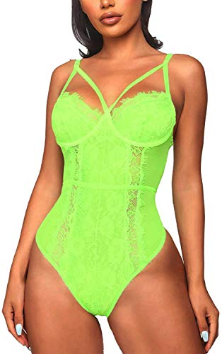 EVELIFE Damen Sexy Spitze Teddy Body Dessous Erotik One Piece Bodysuit Lingerie Unterwäsche(Leuchtendes Grün M)