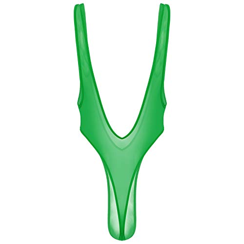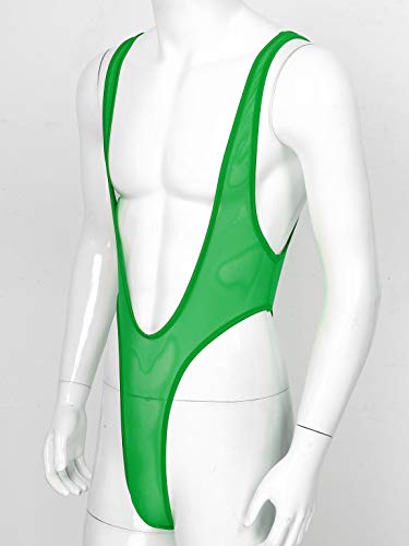 iixpin Herren Mesh Bodysuit Einteiler Ouvert-Body Stringbody Tanga High Cut Sexy Mankini Transparent Männerbody Badeanzug Erotik Dessous Grün OneSize