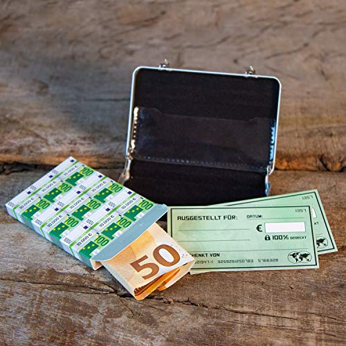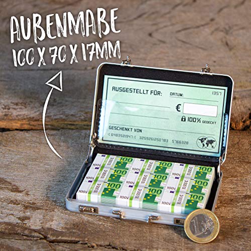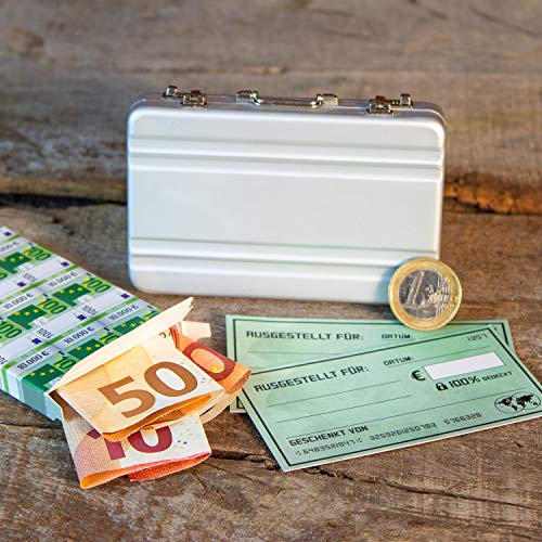 Chroma Products Geldkoffer als Geldgeschenk oder für Gutscheine - Mini Aktenkoffer aus Aluminium mit Schnappverschluss, Geldstapel und Grußkarte - Ideal auch für Hochzeitsgeschenke