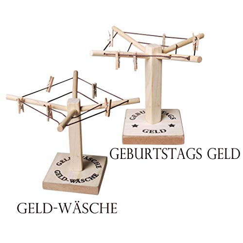 Udo Schmidt 34850 Geld Wäschespinne mit Klammern Geldgeschenk Holz Bodenplatte mit doppelter Aussage: Geburtstagsgeld / Geldwäsche