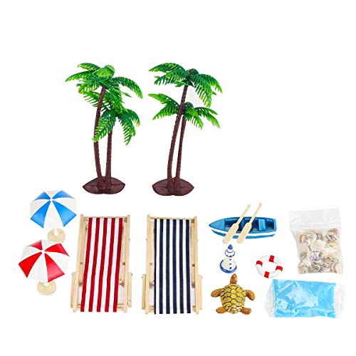 Adkwse Strand-Mikrolandschaft Mini Liegestuhl Sonnenschirm Palme Strand Deko DIY Geldgeschenk Reise Schildkröten Zubehör