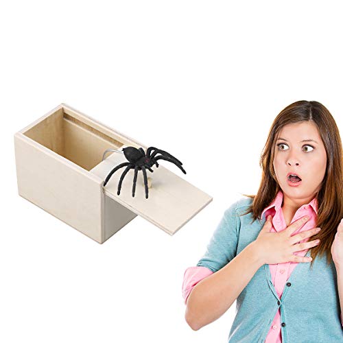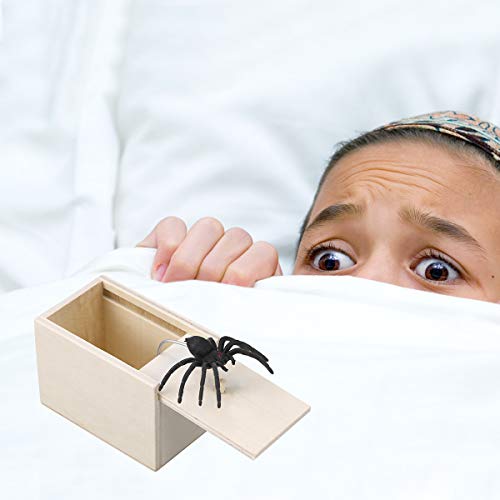 ?????Holzspinnen-Überraschungsbox - Eine hölzerne Überraschungsbox mit lebendiger Spinne im Inneren. Great Gags praktisches Scherzspielzeug, um Spaß zu machen und andere zum Lachen zu bringen.. ?????Verwendung - Sie müssen die Box nur jemandem geben, und er möchte natürlich die Oberseite wegschieben, um zu sehen, was sich darin befindet. Wenn sie dies tun, werden sie durch das plötzliche Auftreten von Gummispinnen ausgetrickst.. ?????Party Favor - Perfekt für Partys oder jederzeit! Einfach zu verwenden! Machen Sie Ihre Familie oder Ihren Freund am Aprilscherz zum Narren oder überraschen Sie sie an Halloween.. ?????Wundersame Dekorationen - Unsere Produkte können auch eine Dekoration in Ihrem Haus für Halloween oder Aprilscherz usw. sein.. ?????Hohe Qualität - Dieses Streichspielzeug aus ungiftigem Material ist praktisch.