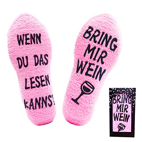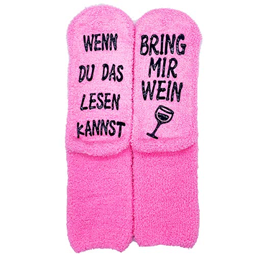 Wein geschenk für Frauen: “WENN DU DAS LESEN KANNST, BRING MIR WEIN“-Socken können ein großartiges Geschenk und ein Füllstoff für Ihre Freundinnen und Liebhaber sein, insbesondere für diejenigen, die Wein in Ihrem Leben lieben.. Warm und weich: Die Pantoffelsocken bestehen aus Fleece, das sehr weich ist. Und sie können Ihre Füße warm und gemütlich halten. Sie können nicht vergessen werden, wenn Sie in Ihrem Haus herumlungern.. Geeignet für Partys: Die Weinsocken können ein erstaunlicher Bestandteil Ihres Dressings sein, wenn Sie eine Party in Ihrem Haus oder im Haus Ihrer Freunde abhalten oder daran teilnehmen möchten.. Perfekte Bettsocken: Unsere flauschigen Socken können im Schlaf getragen werden. Sie können verhindern, dass kalte Luft in der Sommernacht Ihre Gesundheit schädigt, während die Klimaanlage eingeschaltet ist, und Ihre kalten Füße auch im gefrorenen Winter warm halten.. Rutschfeste Socken: Silikongummigriffe an den Sohlen verhindern Rutschen und Stürze auf glatten Böden.