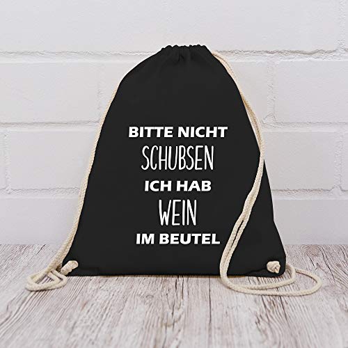 Festival Turnbeutel - Bitte nicht schubsen ich hab Wein im Beutel - Unisize - Schwarz - nicht schubsen ich hab wein im beutel - WM110 - Turnbeutel und Stoffbeutel aus Baumwolle
