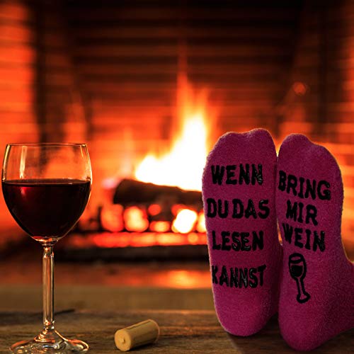 ???? [IDEALE NEUE GESCHENKE] - EYNOCA Kuschelsocken werden in einer geschenkverpackung geliefert und lassen Ihren empfänger zu jedem anlass vor freude quietschen. EYNOCA Plüschsocken sind einzigartige und lustige geschenke für frauen und Männer. "WENN SIE DAS LESEN KÖNNEN, BRINGEN SIE MICH WEIN".. ???? [EINE GRÖSSE PASST FÜR ALLE] - EYNOCA unisex-flauschensocken passen für die universalgrößen EU 35-42. Es hat eine elastische obere manschette, so dass Sie sie bequem tragen können und sich nicht zu eng oder zu locker fühlen. Als geschenk für Ihre geliebte können sie ihre größe nicht falsch verstehen!. ???? [Rutschfestes Design] - Die rutschfesten buchstaben auf der unterseite der socken können reibung verursachen, und sie können im Haus herumlaufen, ohne sich gedanken über das verrutschen auf fliesen und anderen glatten oberflächen machen zu müssen. Bequem und sicher.. ???? [LUXUSMATERIAL] - Dicke, flauschige, dehnbare baumwollsamtmischung fühlt sich super weich an und hält Ihre Füße immer warm. Die hochwertige stricktechnologie vermeidet schlampige Kanten und stiche und ist zudem lichtbeständig, sodass sie ohne ausbleichen immer wieder gewaschen werden können.. ???? [EINZIGARTIG FÜR ALLE GELEGENHEITEN] - Wählen sie lustige EYNOCA socken als Geburtstagsgeschenke, Ostergeschenke, Weihnachtsgeschenke, Neujahrsgeschenke und füllende Adventskalender, die fantastische geschenke für frauen oder männer sind. Nie wieder wird sie sich über kalte füße beschweren, weil du schlau geworden bist und thermosocken gekauft hast!