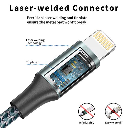 ?Aufgerüstetes MFi-zertifiziertes Blitzkabel?: ist MFi-zertifiziert und verwendet Apples aufgerüstete Terminals (haltbarer) und Smart Chips, um sicherzustellen, dass keine Warnmeldungen angezeigt werden.Dieses iPhone-Ladekabel unterstützt außerdem ein schnelles Aufladen (bis zu 2,4 A) und verhindert gleichzeitig eine Überhitzung und Überladung, um Sie und Ihr Gerät zu schützen.. ?Garantie für ultrahohe Qualität?: mit einem verbesserten iPhone Ladekabel, das mehr als 10.000 Biegetests für zusätzlichen Schutz und Haltbarkeit bestanden hat.Verbesserte 3D-Aluminiumverbinder und eine exklusive Laserschweißtechnologie sorgen dafür, dass Metallteile nicht reißen und die Verbindung auch mit einer Schutzhülle fester ist, so dass sie an ihrem Platz bleibt und sich nicht lösen kann.. ?Perfekte Länge?: 4 Stück [0.5M/1.2M/1.8M/3M] Sie können sich auf das Sofa oder die Couch legen und das Gerät während des Ladevorgangs verwenden.Und Sie können es frei in Ihrem Schlafzimmer, Büro oder sogar auf dem Rücksitz Ihres Autos verwenden.. ?Kompatibilitätsliste?: Dieses von MFi zugelassene iPhone-Ladekabel ist mit dem kompatibel iPhone 11 / 11 Pro / 11 Pro Max / XS Max / X / XS / XR / 8 / 8 Plus / 7 / 7 Plus / 6s / 6s Plus / 6 / 6 Plus / SE / 5S / 5C / 5, iPad Pro, iPad, iPod, AirPods sowie das neueste iOS System.