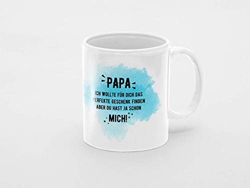 DESIGN: Geschenke für Papa zu finden ist nicht so einfach. Er hat ja immer schon alles. Diese Tasse aber bestimmt noch nicht! Dein Papa verdient schließlich das perfekte Geschenk. Damit kannst du ihn überraschen und eine große Freude machen.. ANGEBOT: Die Tasse wurde bedruckt mit dem lustigen Spruch „PAPA ich wollte für dich das perfekte Geschenk finden, aber du hast ja schon MICH!“. Das perfekte Papa Tochter Geschenk, Weihnachtsgeschenk oder Geburtstagsgeschenk für einen Papa, der Humor hat.. ANLASS: Das perfekte Papa Tochter Geschenk. Durch die vielen Optionen eignet es sich auch hervorragend als Geschenk zusammen mit der Schwester oder dem Bruder. Egal ob zum Geburtstag, zu Weihnachten oder als Vatertagsgeschenk, die Überraschung gelingt. Eine super Geschenkidee für Papa!. QUALITÄT: Unsere Tassen sind spülmaschinenfest, mikrowellenfest und versprechen lange Farbbrillianz. Das Fest der Liebe, nämlich Weihnachten steht vor der Tür. Hole dir mit dieser Tasse das perfekte Geschenk für deinen Papa und überrasche ihn damit.. GRÖSSE – Die Kaffeetasse misst 9,5 cm, hat 8 cm Durchmesser, und ein Fassungsvermögen von ca 325ml (11oz). Sie wird mit Liebe in Deutschland bedruckt und wird in einem stabilen Karton geliefert.