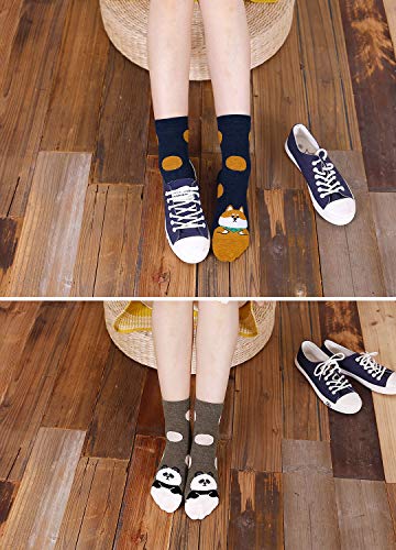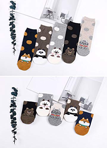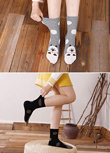 LOFIR Lustige Bunte Socken Damen Tier Muster Niedlich Socken aus Baumwolle Süß Karikatur Kawaii Katze Socken Neuheit Socken Geschenk für Mädchen Damen, Größe 35-41, 5 Paare
