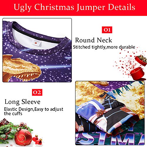 Material: 3d Hässliche Weihnachtspullover aus Polyester und Elasthan. Sehr atmungsaktiv und angenehm zu tragen. 3d Gedruckt Weihnachtspullover:Voller druck weihnachtsartentwurf mit soviel lustigen mustern, erhellen sie herauf Ihren feiertag! jedes jahr braucht ein weihnachts pullover sweatshirt. Kein Verblassen: Verwendet die 3D digitaldrucktechnologie, um sicherzustellen, dass sich die Pullover nicht ablösen, ohne jemals zu verblassen. Anlass: Ugly xmas sweater anzug für weihnachten urlaub, party, resort Tragen, freizeitkleidung, auch ein bestes weihnachtsgeschenk für männer / frauen / teen mädchen / jungen. Größe: Bitte beachten sie die größentabelle, bevor Sie bestellen, und wenn sie einen bierbauch haben, wird empfohlen, 1-2 größe zu wählen